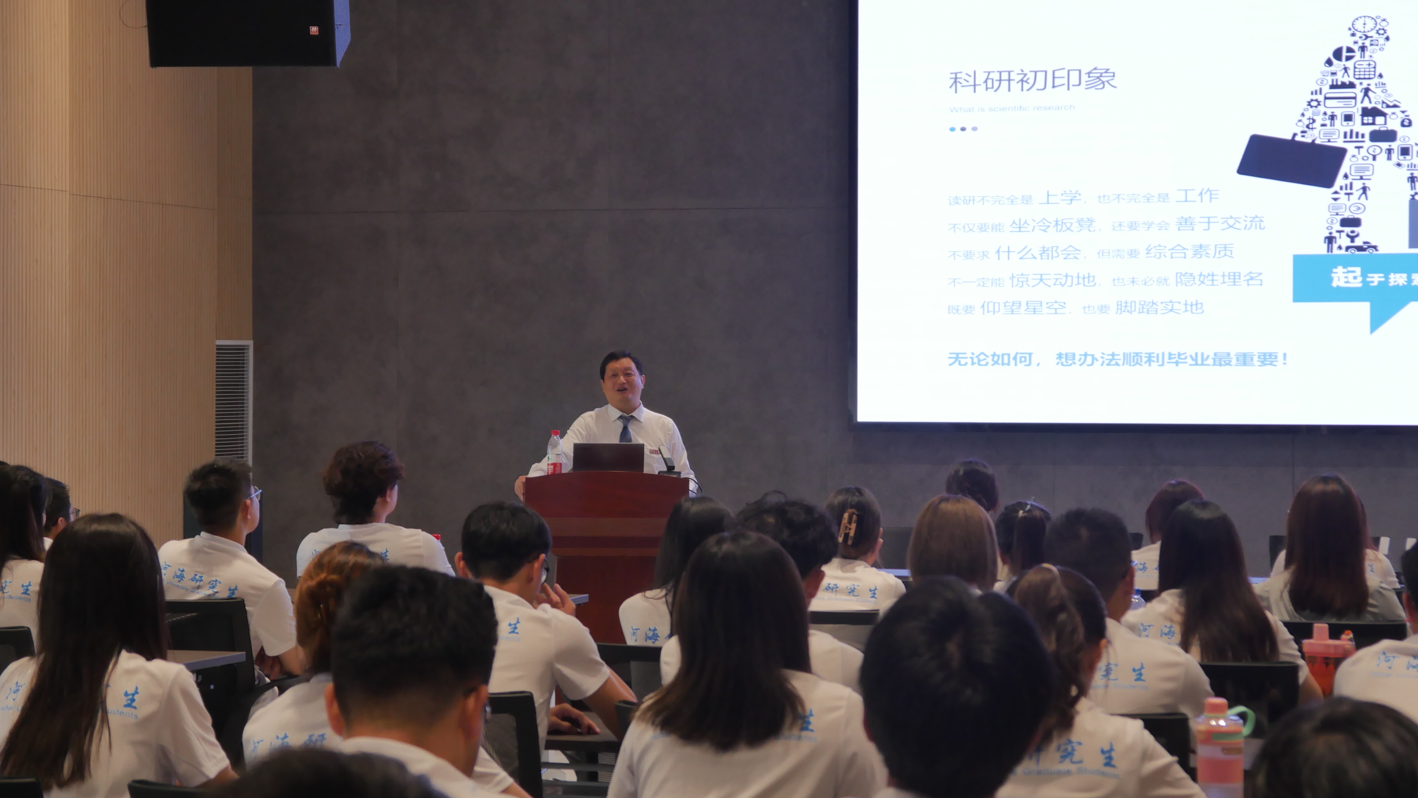 教师代表包晔峰教授主要从研究生毕业要求和如何快速提升个人学习能力达到毕业要求两个方面,为同学们进行细致的讲授。他希望同学们能在研究生期间的学习过程中打下坚实的理论基础,提高独立的科研能力,早日成长为能独当一面的“栋梁之材”!