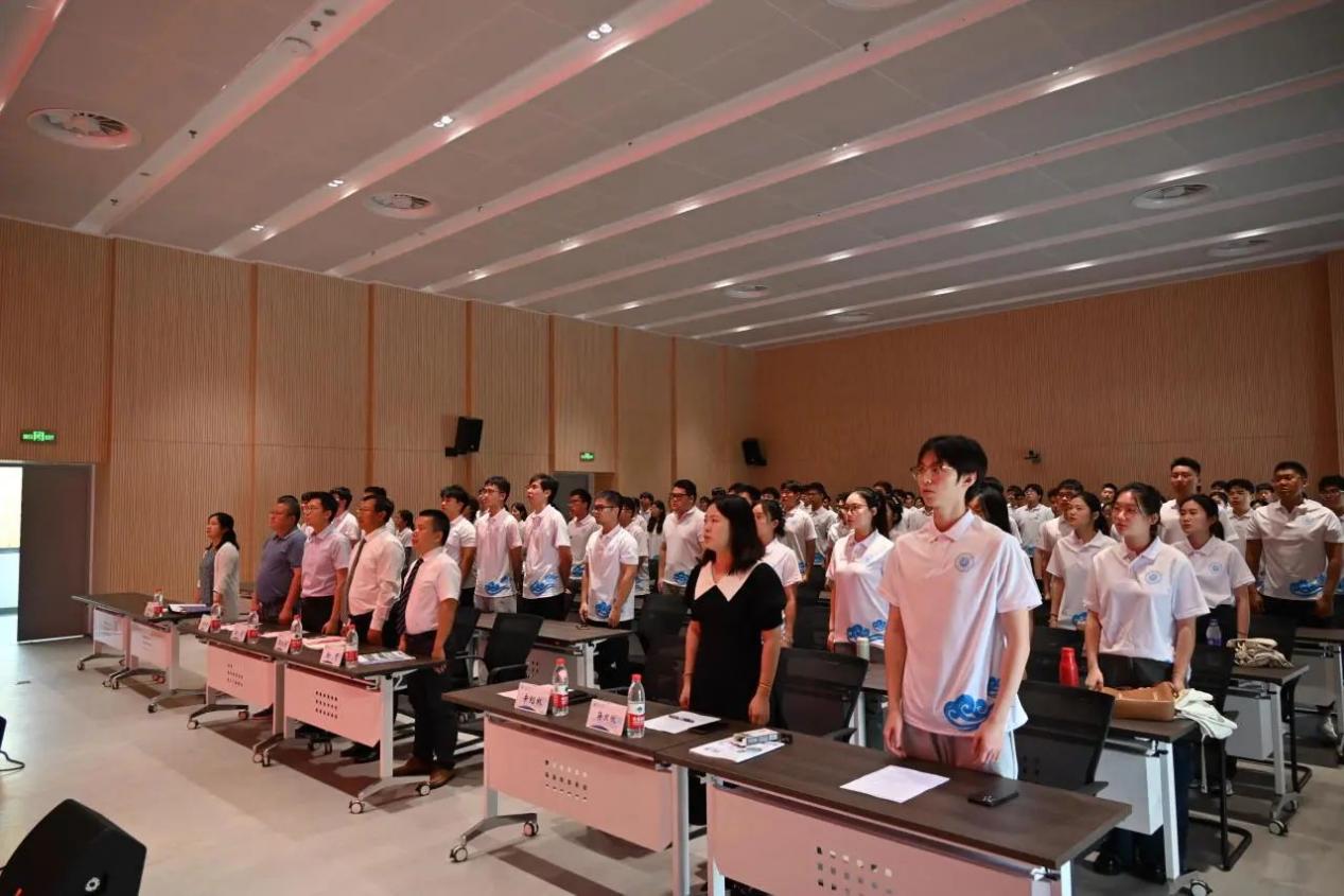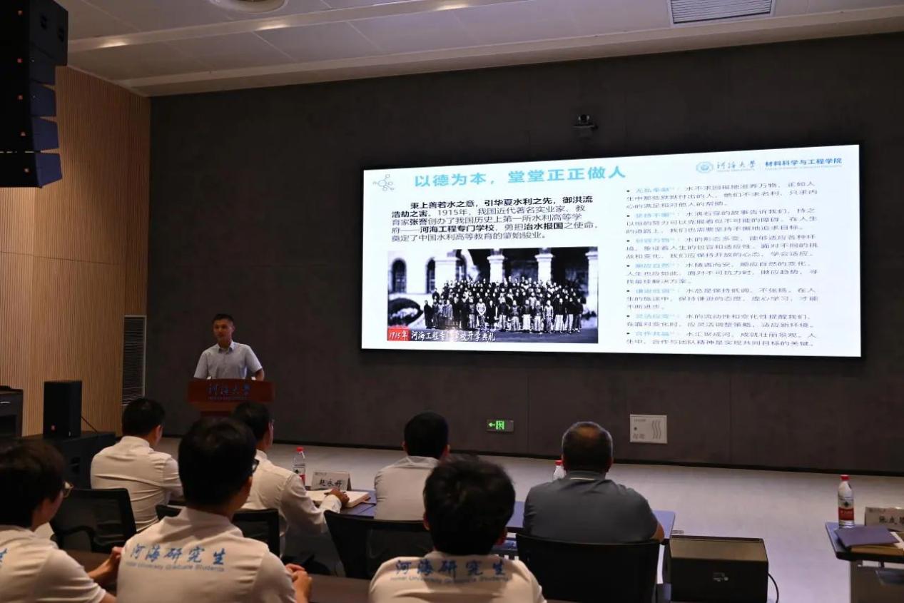 2024级硕士研究生新生沈忱作为新生代表发言,并带领全体学生进行学术诚信宣誓。沈忱同学在发言中表达了自己对未来学习生活的美好期望,并以“博学而笃志”为座右铭,希望大家都能成为具有“中国灵魂、全球视野、河海特质”的新时代河海人。