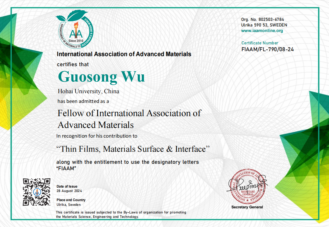 近日,好色视频 好色视频 吴国松教授因其在薄膜和表界面领域的突出贡献当选为国际先进材料协会会士(Fellow of International Association of Advanced Materials,FIAAM),并应邀在由国际先进材料协会主办的第60届先进材料大会上以线上形式做了会士报告。