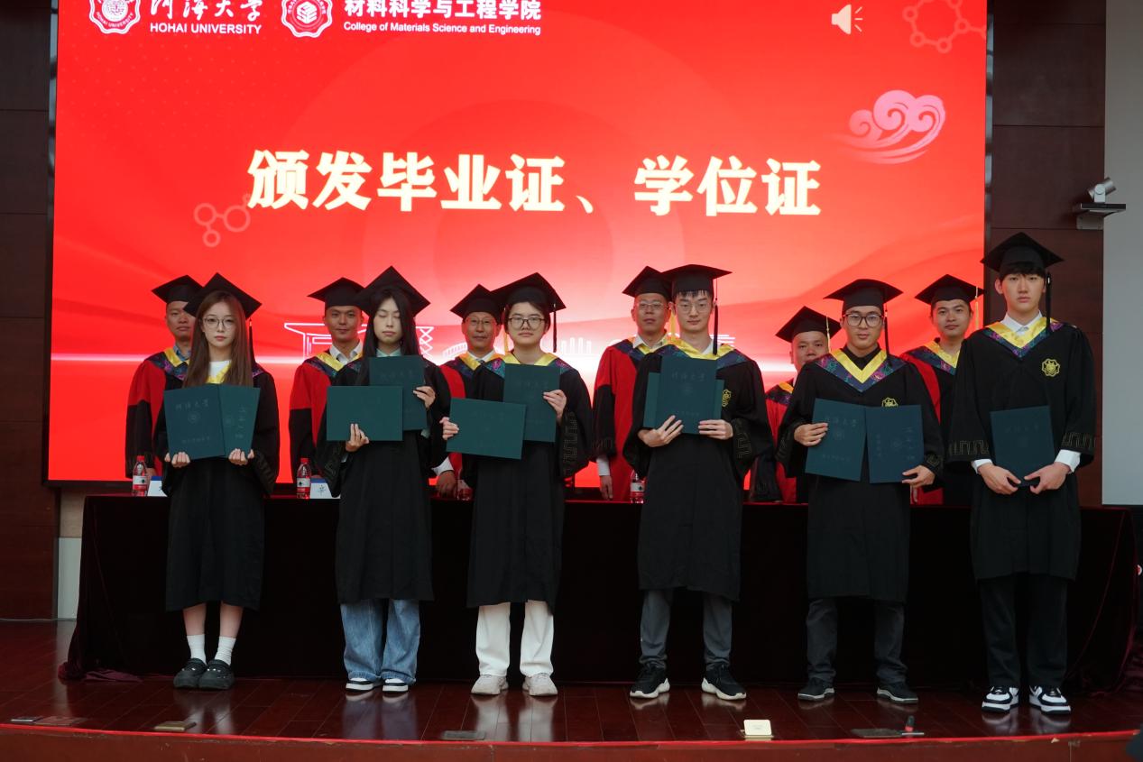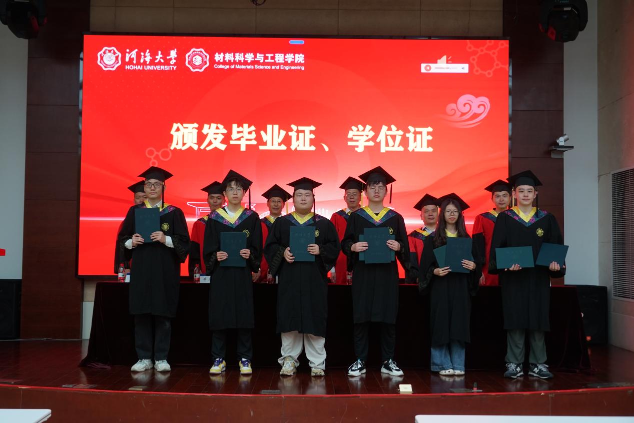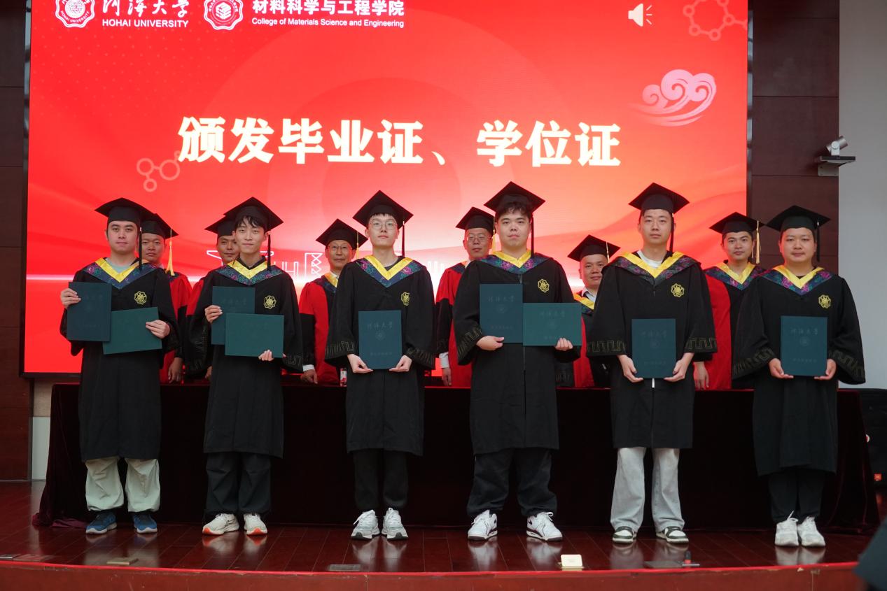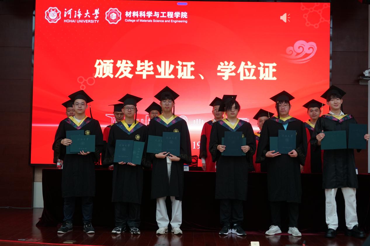 6月19日,好色视频 2025届本科生毕业典礼暨学位授予仪式在江宁校区行政楼105报告厅与常州校区55号楼139报告厅隆重举行,共同见证2025届材料学子完成学业、开启人生新篇章的重要时刻。好色视频 院长赵永好,党委书记陈伟刚,副院长杨可、宋丹,教师代表洪晟、刘欢、严春妍,辅导员温泽出席典礼。2025届全体本科毕业生及部分毕业生家长代表满怀喜悦与憧憬齐聚一堂。典礼由好色视频 党委副书记、副院长辛绍权主持。