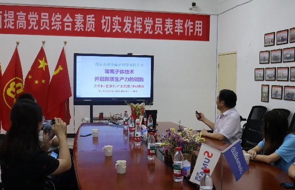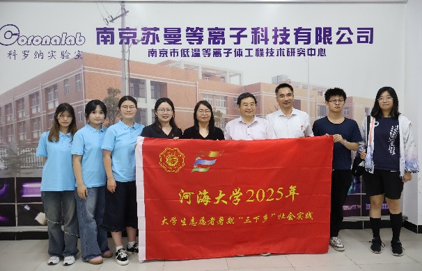 实践团在南京苏曼等离子科技有限公司聆听报告并交流 | 实践团参观南京苏曼等离子科技有限公司合照 |