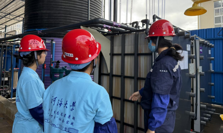 “河海水韵,‘膜’材新程”实践团关注国家水网建设,赴广西壮族自治区贺州市开展调研,与贺州市水利局、生态环境局座谈交流,了解当地水网调度和水源地保护现状。实地走访龟石水库、碧溪村及富川、旺高污水处理厂,对比水处理技术差异,并深入桂东电子科技公司学习膜技术在工业用水处理中的应用。团队与贺州市生态环境局达成共建实践基地的共识,为膜材在水资源领域的应用探索新路径。