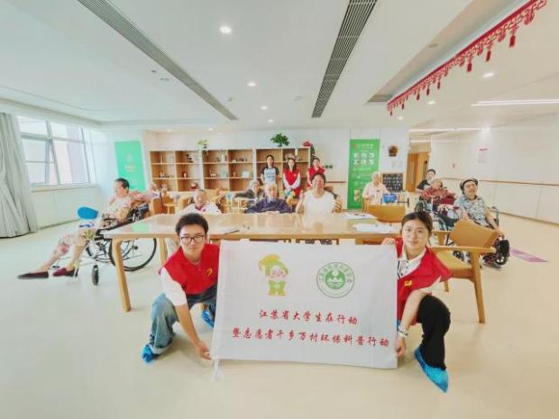 小分队在常州市金坛区河滨小学进行科普宣讲 | 小分队在南京市建邺区社会福利院合影 |