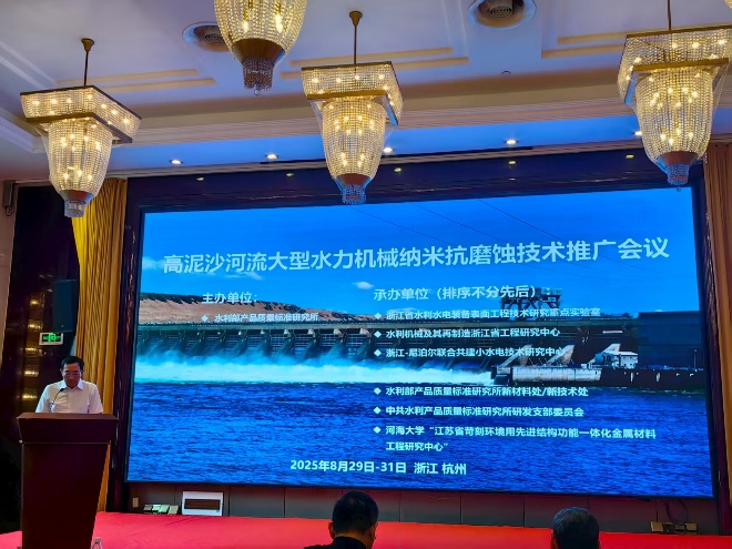 2025年8月29日- 30日,由水利部产品质量标准研究所主办的“高泥沙河流大型水力机械纳米抗磨蚀技术推广会议”在浙江杭州举行,好色视频 “江苏省苛刻环境用先进结构功能一体化金属材料工程研究中心”与浙江省水利水电装备表面工程技术研究重点实验室等多家单位联合承办。