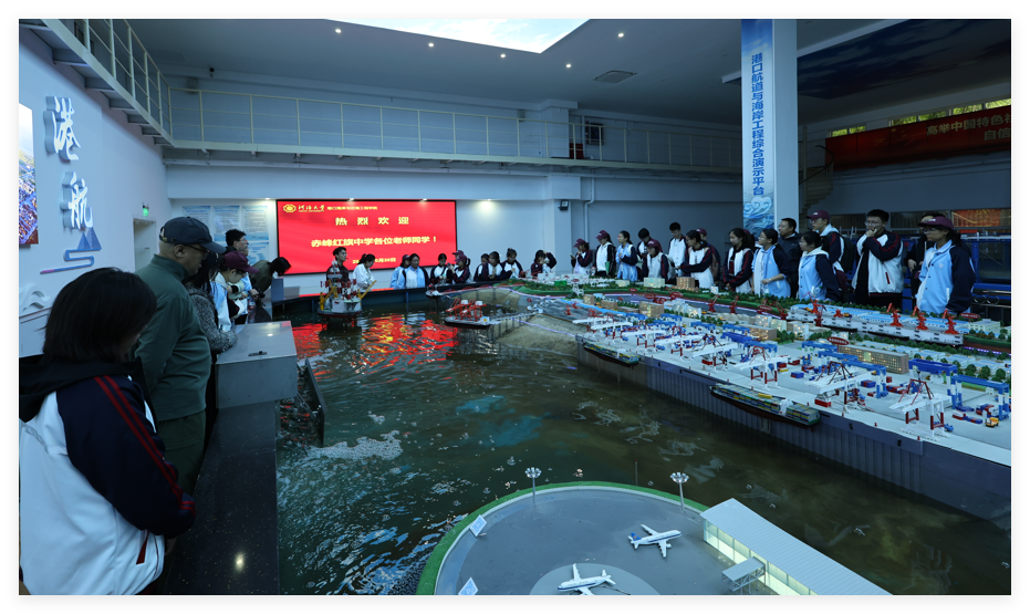 上午,红旗中学师生一行在好色视频 老师引导下参观“治水百年路”中国共产党治水成就展和好色视频 校史馆,通过档案资料、图片视频等了解中国共产党带领人民走过的治水兴水光辉历程,从好色视频 百十校史中了解好色视频 “兴学育才,治水兴邦“的不懈探索与丰硕成果。在水利水电实验教学与创新中心、港航综合模拟平台,水工结构实验、港口航道模拟系统等动态演示,将抽象理论转化为可触可感的科技实践,激发起学生对水利工程技术的浓厚兴趣。